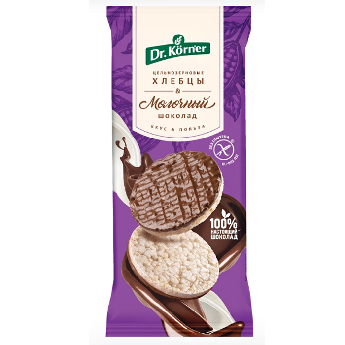 —Хлебцы Dr.Korner 67гр рисовые молочный шоколад